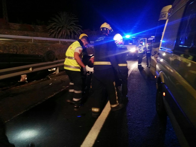Hacia las 05.35 horas de la madrigada el 1-1-2 del Gobierno de Canarias recibía una alerta en la que se informaba de un vuelco de un turismo en San Bartolomé de Lanzarote, activando de inmediato los recursos de emergencia necesarios.