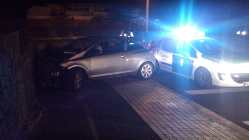 Un turismo colisionó este sábado por la noche contra un muro de piedra en la localidad turística de Playa Blanca.