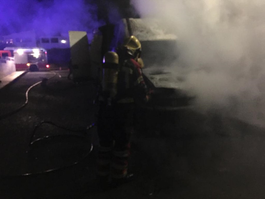 El CEOCES alertó al servicios de bomberos de la isla a las 23.32 horas. Al llegar al lugar los miembros del consorcio comprobaronque se trataba de un solo vehículo que ardía en casi su totalidad desde su mitad hacia su parte delantera.