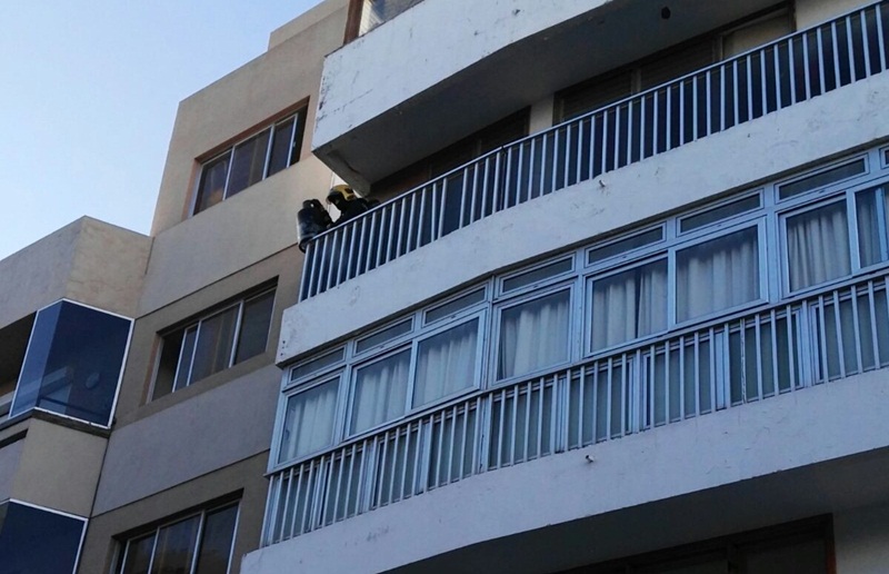 Los bomberos procedieron a retirar la botella del incendio y a apagar las llamaradas que salían de la misma. Una vez extinguido el fuego, procedieron a controlar el escape de gas de la botella en el balcón de la vivienda.