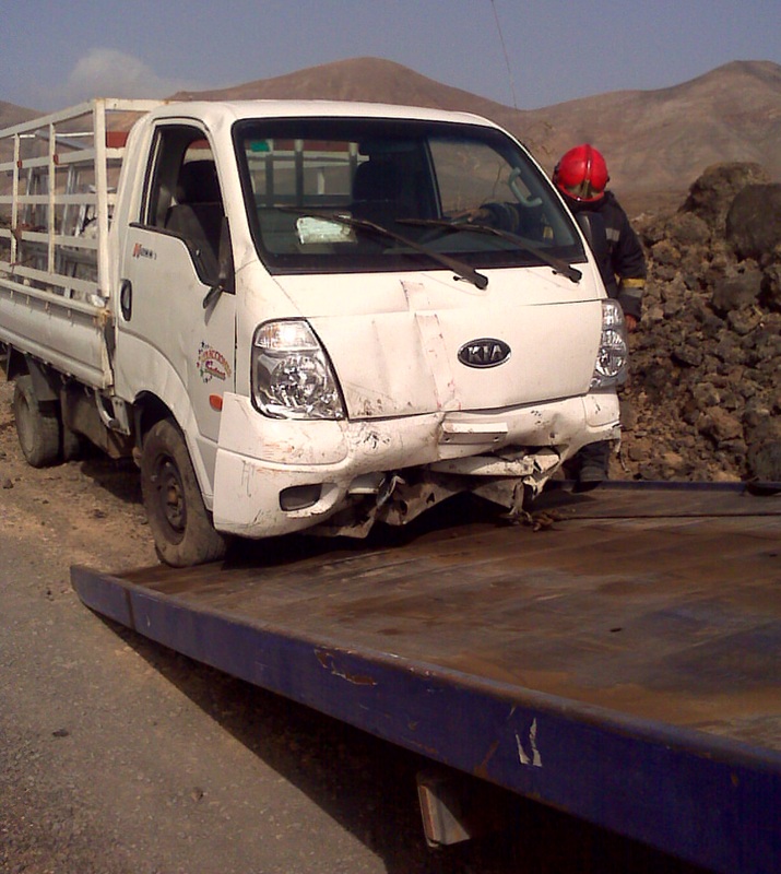 Resultó ileso . Protección Civil de Yaiza “descubrió″ el accidente cuando iba a sofocar un incendio