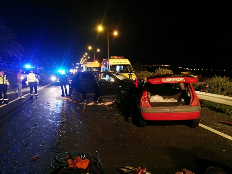 Un muerto y dos heridos graves en una colisión frontal en Playa Honda