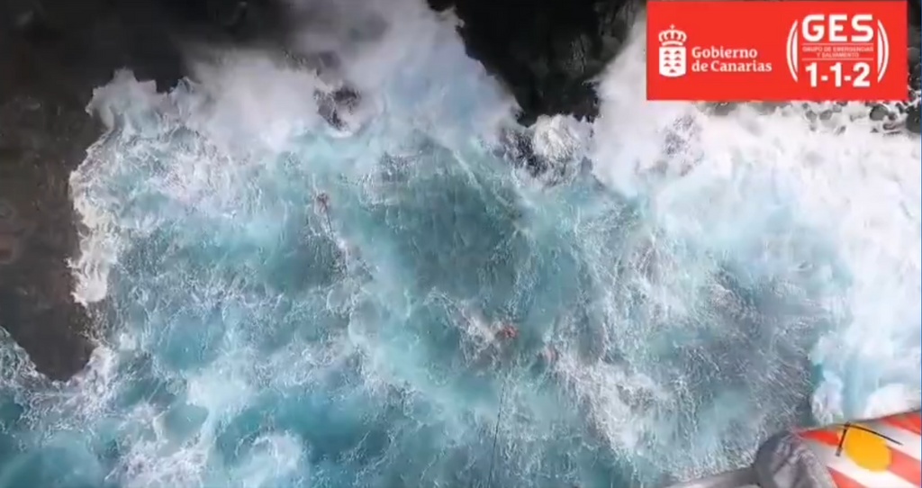 Así, el Grupo de Emergencias y Salvamento (GES) del Gobierno de Canarias movilizó un helicóptero de rescate y recogió al varón del agua cuando ya se encontraba en parada cardiorrespiratoria. En un vídeo subido por el 112 a la red social X se puede ver cómo el helicóptero trata de izar al hombre en medio de un fuerte oleaje.