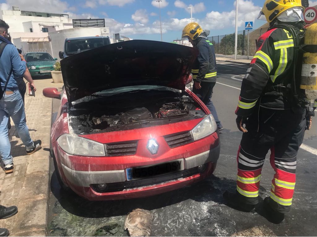 Un turismo con dos ocupantes resultó incendiado en la tarde de hoy martes en las inmediaciones de la rotonda de San Bartolomé. Alertados los bomberos, al personarse en el lugar pudieron apreciar que el incendio había sido extinguido por unos vecinos, con ayuda de un extintor y agua de riego de una vivienda particular.
