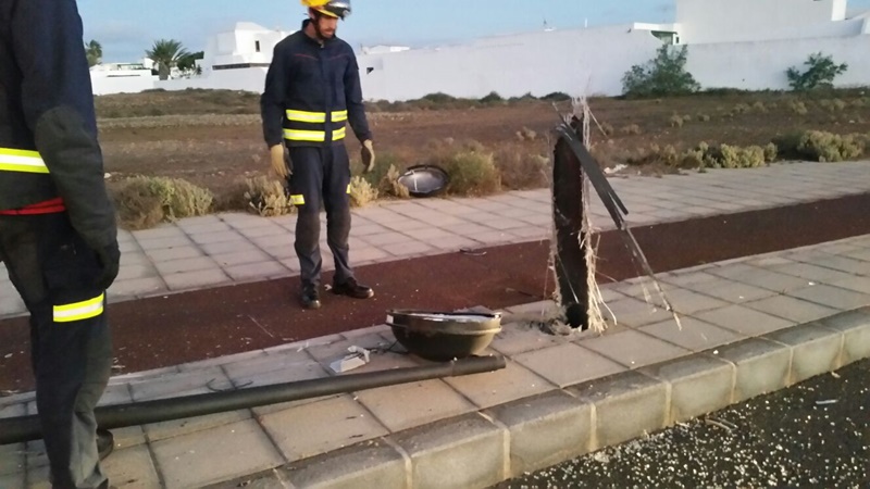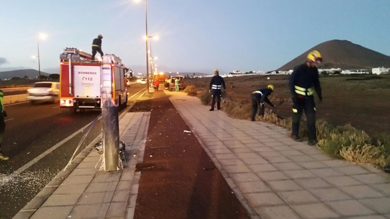Un vehículo se salía de la carrera en la tarde del miércoles 8 de febrero en la rotonda César Manrique de Tahíche y chocaba contra una farola, arrancándola.