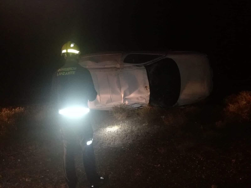 Otro vuelco se produjo también este sábado en las inmediaciones de la localidad de Femés, al sur de Lanzarote. Según la información de los bomberos, el vehículo se salió de la calzada quedando sobre un lateral.