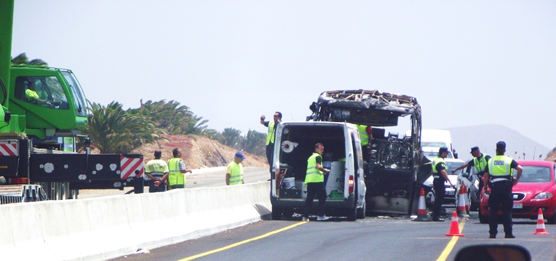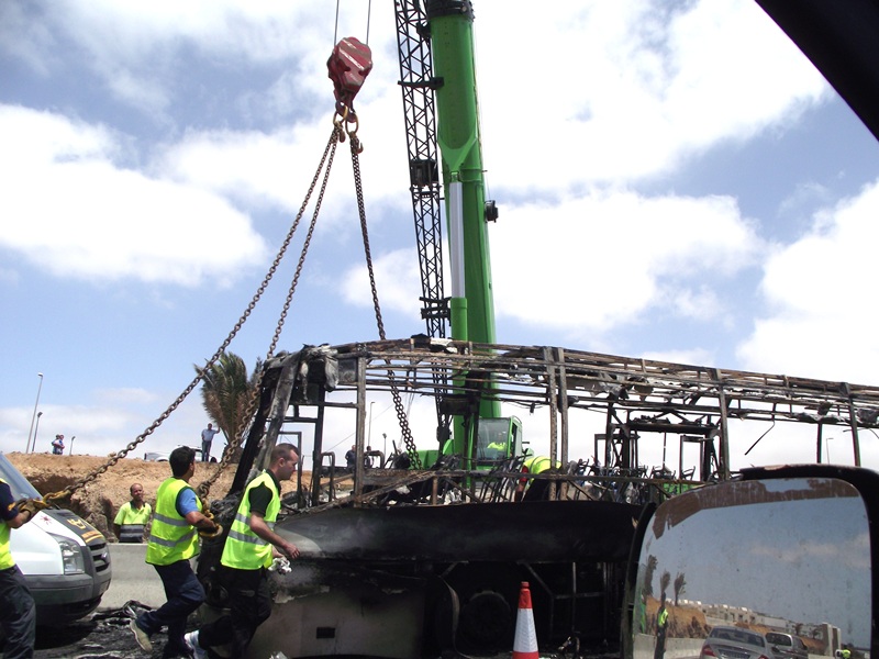 Una vez en el lugar de los hechos, se comprobó que la guagua ardía en su totalidad y se procedió a extinguir el fuego. Una vez sofocado, se aplicó una capa de espuma para controlar un vertido de gasoil y se taponó el tanque para controlar la fuga.