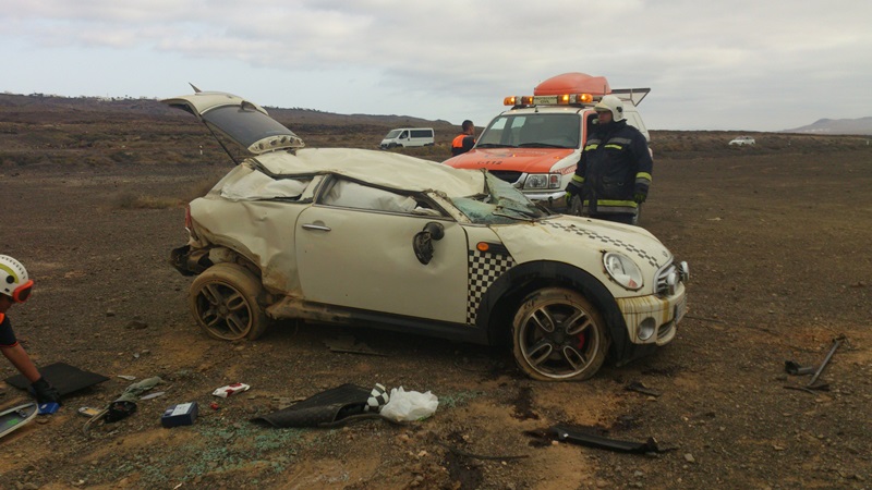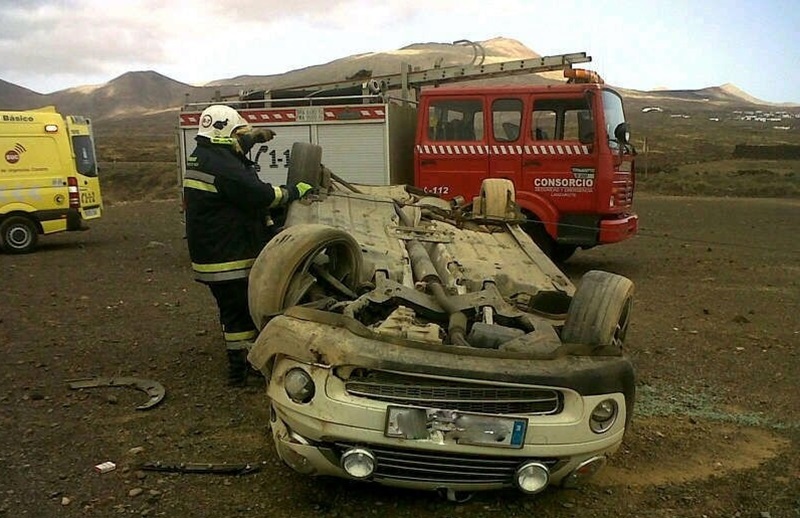 Una mujer de 22 años resultó herida de gravedad después de que su coche volcase en la LZ-1, en sentido a Playa Blanca, en la zona de Las Salinas.