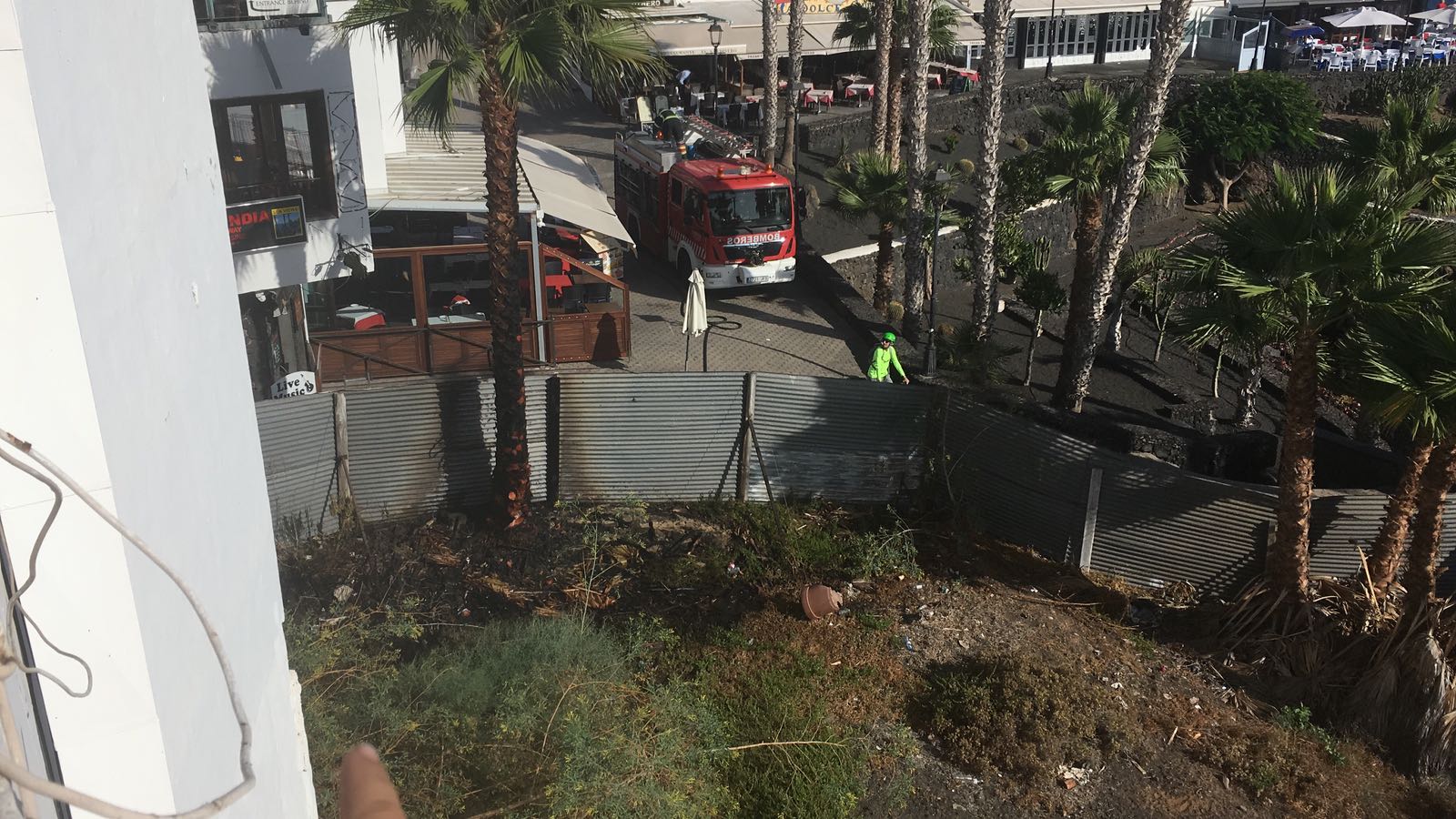 Cerca de las 18:30 de la tarde de este martes, día 28, como se puede ver en el vídeo, se declaraba un incendio en el interior de un solar en Puerto de Carmen que como se aprecia en la fotografía está vallado.