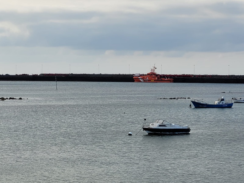 Entre ellos, ocho personas, una de ellas un menor de edad, eran rescatadas en el mar por la Helimer. Siete de ellos se encuentran bien, pero el niño presenta quemaduras y deshidratación y ha sido trasladado al hospital Molina Orosa.