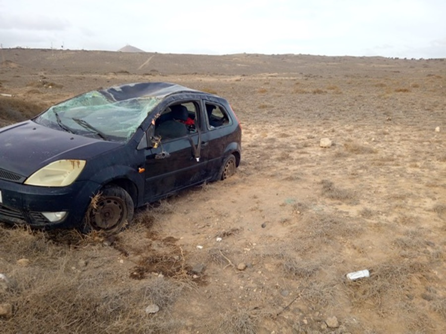 En el lugar también se encontraba la Policía Local de San Bartolomé. Una ocupante del vehículo fue evacuada al hospital, según destaca el Consorcio, que señala que el otro ocupante se encontraba bien y no tuvo que ser trasladado a un centro sanitario.