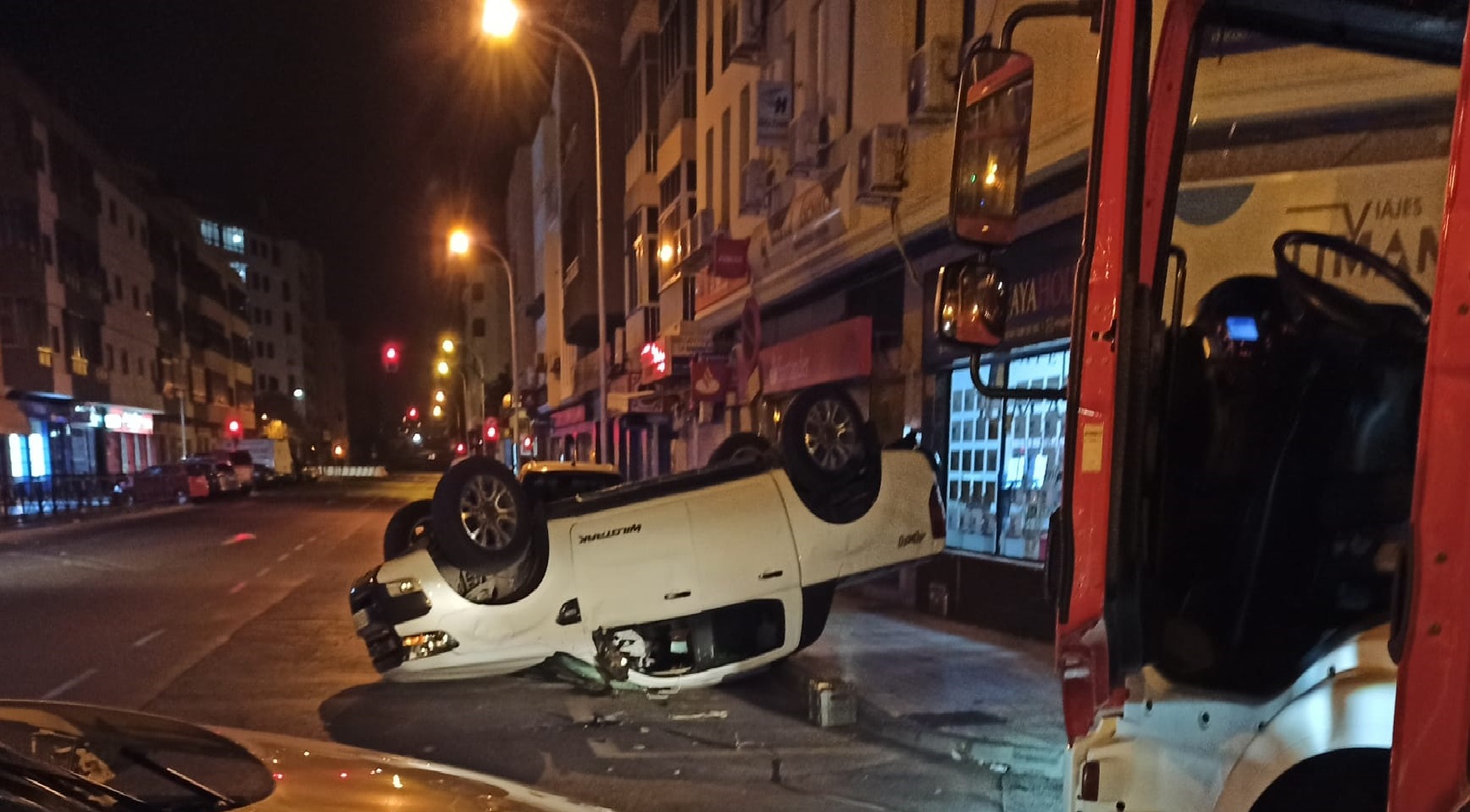 Un vehículo ha volcado esta madrugada en la calle Manolo Millares, en Arrecife, después de colisionar con otro turismo.