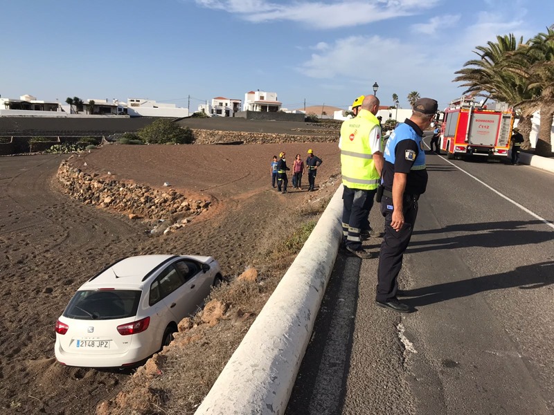En concreto, el siniestro tenía lugar en torno a las 15:30 horas, en la vía que enlaza la LZ-10 con el Ayuntamiento de Teguise. El coche se salió de la carretera y fue a parar a una finca colindante.