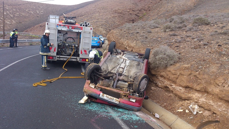 Vuelco de un vehículo en la carretera que une Las Casitas de Femés y Uga