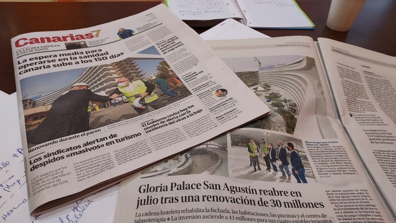 Da a veces envidia ver como los políticos de Gran Canaria y de Tenerife, o de la misma Fuerteventura, no tienen complejos algunos a la hora de valorar la industria turística en sus islas. Saben de la importancia económica y social que tiene para sus islas. Da gusto ver hoy en las primeras páginas de la prensa insular de Gran Canaria (Canarias 7) destacando, como no podía ser de otra manera, la gran apuesta que el Grupo Gloria ha realizado en el antiguo Hotel San Agustín, uno de los históricos de Gran Canaria. Una inversión de 30 millones de euros para renovar completamente esas instalaciones para que sigan siendo un referente turístico de calidad de la isla redonda. El Presidente del Cabildo de Gran Canaria, un hombre de Izquierdas, defensor histórico de las clases medias y trabajadoras, Antonio Morales, junto con la alcaldesa de San Bartolomé de Tirajana, Conchi Narváez, el consejero de Turismo del Cabildo grancanario, Carlos Álamos, entre otras autoridades realizaron ayer una visita a las obras del que será el nuevo Gloria Palace San Agustín. Y lo hacen como un guiño y una complicidad con un grupo hotelero que, en plena pandemia, con la incertidumbre que hay, arriesga para afrontar mejor el futuro turístico. Y comentamos esta noticia por el contraste de lo que ocurre en esta isla de Lanzarote acomplejada por la estupidez y el engaño. El presidente del Cabildo de Gran Canaria no sólo alabó el proyecto de reforma del Gloria Palace San Agustín, sino que destacó que “son obras valientes en los momentos en los que estamos, generosas para la economía canaria y también necesarias”. Son notables también las palabras de la alcaldesa de San Bartolomé de Tirjana, municipio plenamente turístico, diciendo que “es importante mostrar valentía y el esfuerzo de algunas empresas, aquellas que pueden, que están aprovechando este momento de parón por la situación pandemia y han apostado por renovarse”.