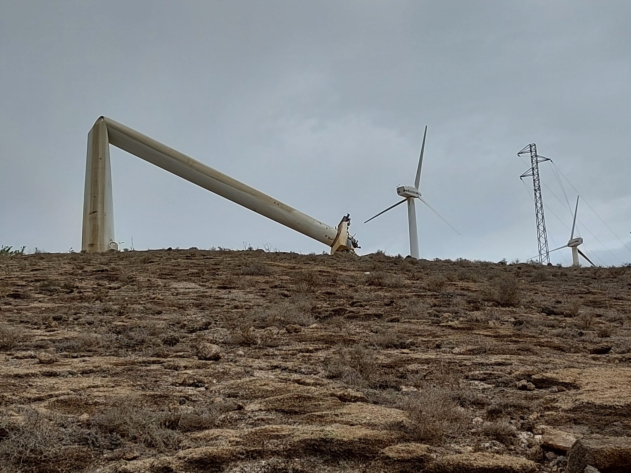 A trozos. Así se nos está cayendo el parque eólico de Montaña Mina, unas instalaciones que llevan más de una década sin funcionar y que se han convertido en un verdadero peligro para la población de la zona. Todo el mundo está de acuerdo en que hay que desmantelar esas instalaciones. El mayor problema ahora mismo es quién se hace cargo de eso. La empresa propietaria lleva años en quiebra y en concurso de acreedores, por lo que no parece muy probable que vayan a hacerse cargo de este “marrón”. De hecho, es evidente que nos lo vamos a tener que ‘comer’ nosotros.