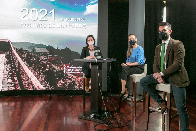 La consejera responsable del área, Yaiza Castilla, presentó esta mañana en el Hotel Escuela Santa Cruz la estrategia 'Pasión por tus islas', que persigue motivar a los residentes canarios para que elijan el Archipiélago para disfrutar de sus vacaciones de Semana Santa. Asimismo, Castilla anunció la batería de acciones que ya han comenzado a desarrollarse en los principales mercados emisores internacionales para consolidar al destino Islas Canarias como la primera opción de viaje cuando se levanten las restricciones de movilidad motivadas por la pandemia, previsiblemente a partir del mes de mayo.