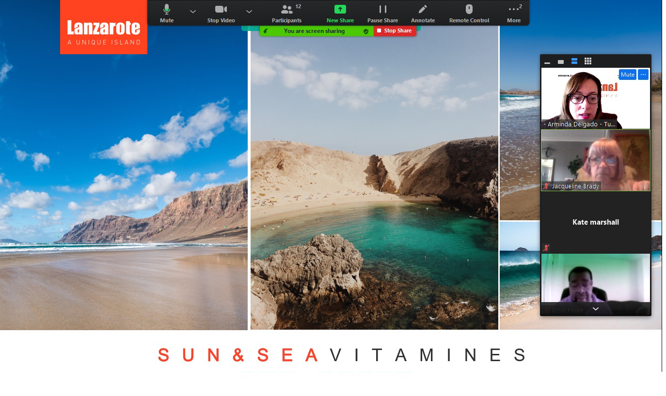 Durante esta actividad, que se desarrolló de forma telemática, SPEL-Turismo Lanzarote mostró un vídeo promocional de la isla y atendió a las cuestiones planteadas por los representantes de las agencias de viajes británicas.